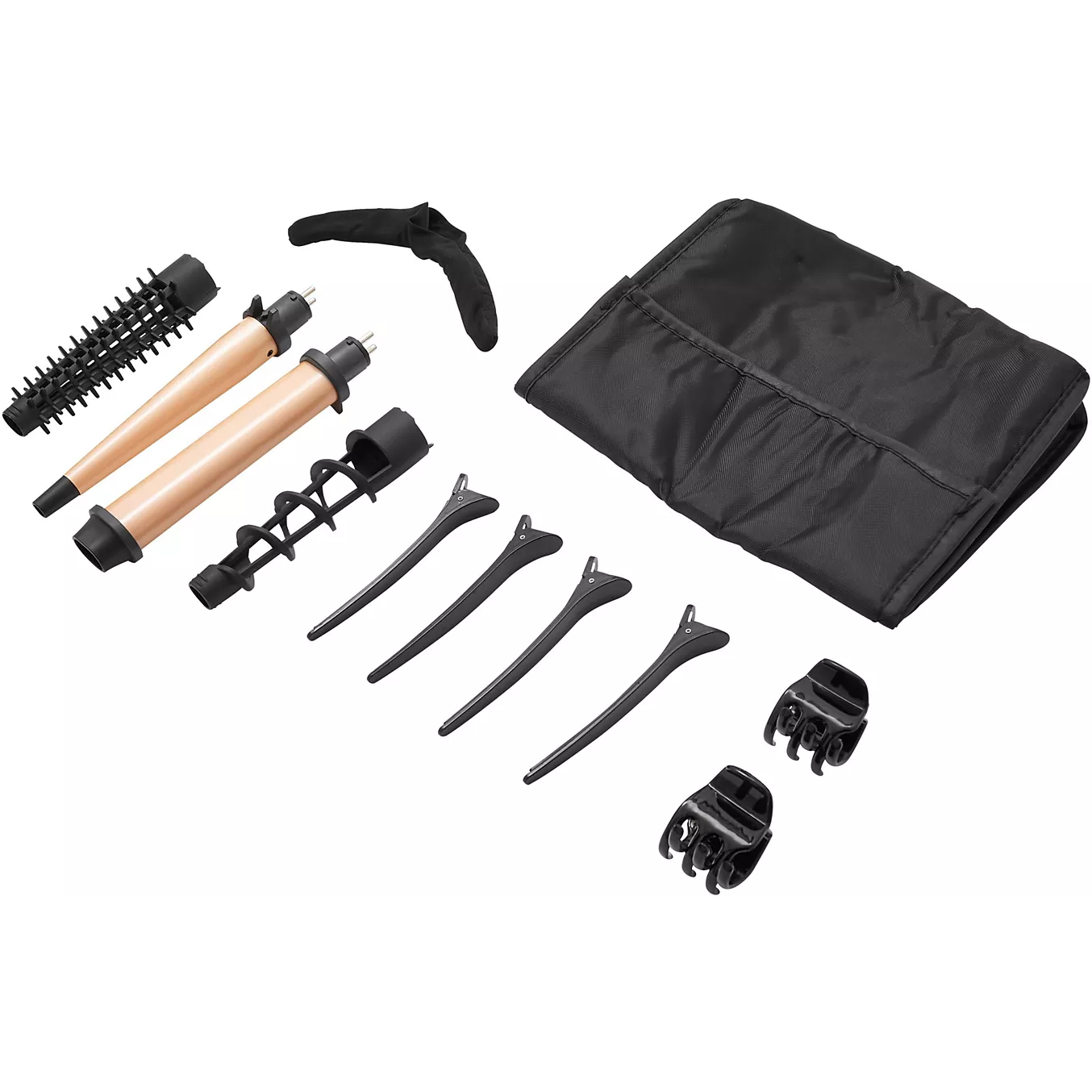 - 14-en-1 : créez des boucles glamours à l’aide du fer à boucler conique, un beau brushing ou des boucles larges avec la brosse chauffante 32 mm, un effet gaufré ou un lissage parfait avec le crimper/lisseur 2-en-1, et bien plus encore.